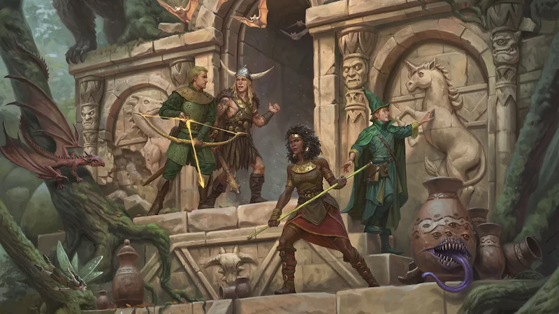 Critical Role hat hier seinen Stempel hinterlassen, wie es scheint. Das Feywild suppt durch die Ebenen. Ein Zwerg, ein Elf, ein Magier… Das konnte doch Tolkien schon in den 50er Jahren des letzten Jahrhunderts! Jetzt gibt es maskierte Mönche, orkische Druiden, weibliche Paladine und rockende Bardinnen, Drachenassassinen, glühende Schwerter und Säbelzahntiger als Tierbegleiter.